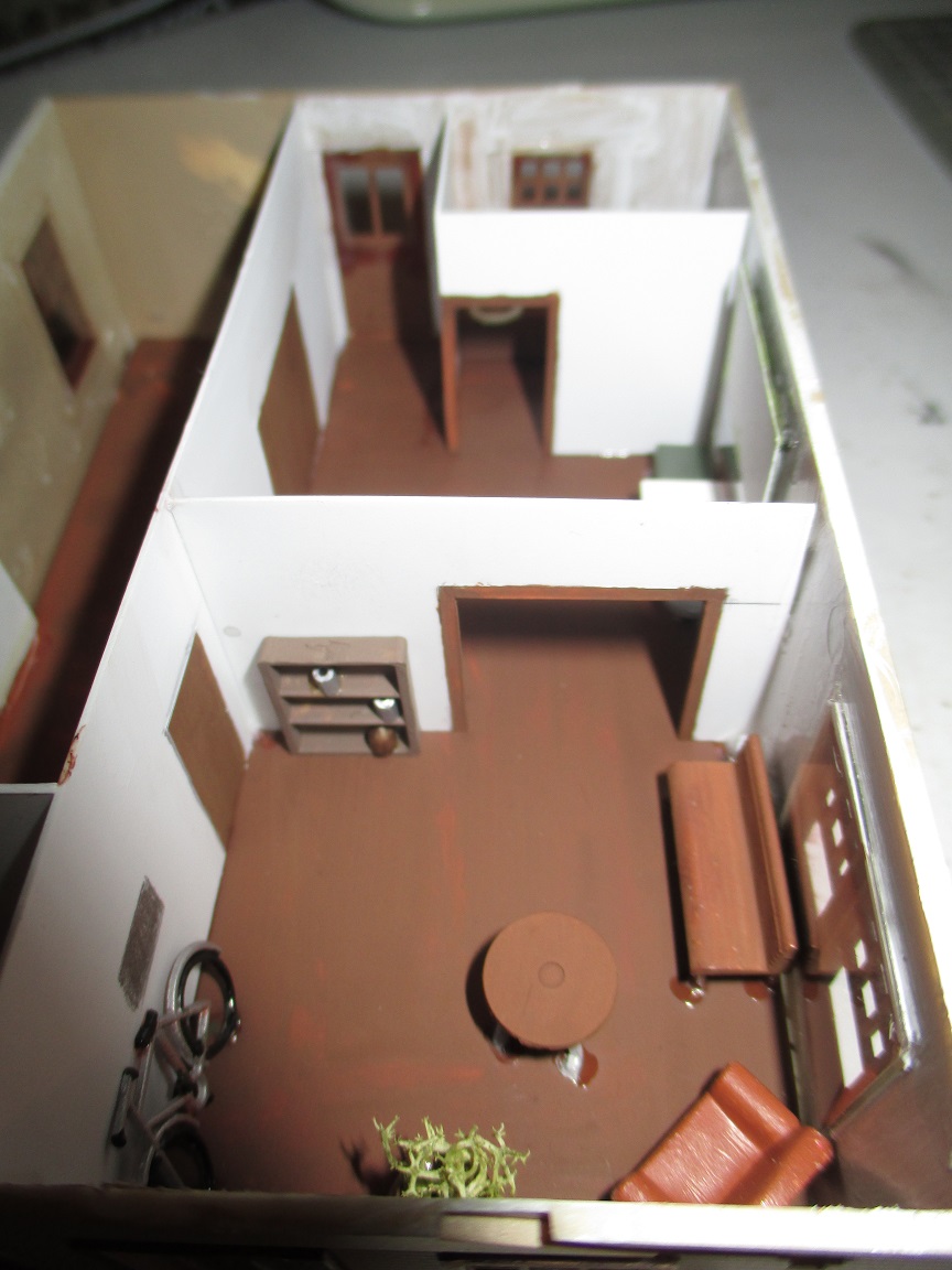 There will be a house in the town at the end of the branchline (Oakland). As the house will be close to the edge of the table, I decided I had to make and detail the interior..