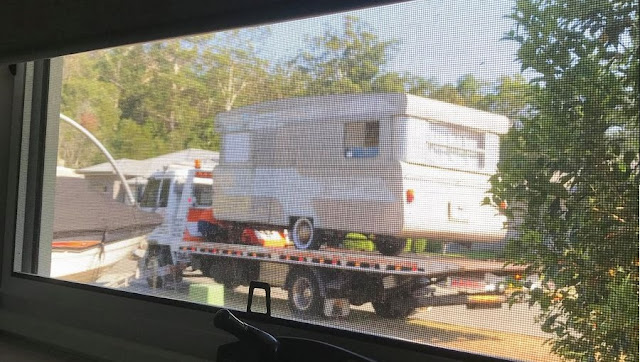 After five months of work, the caravan has progressed to the point that it can be moved into the yard. Within another month or two, I should